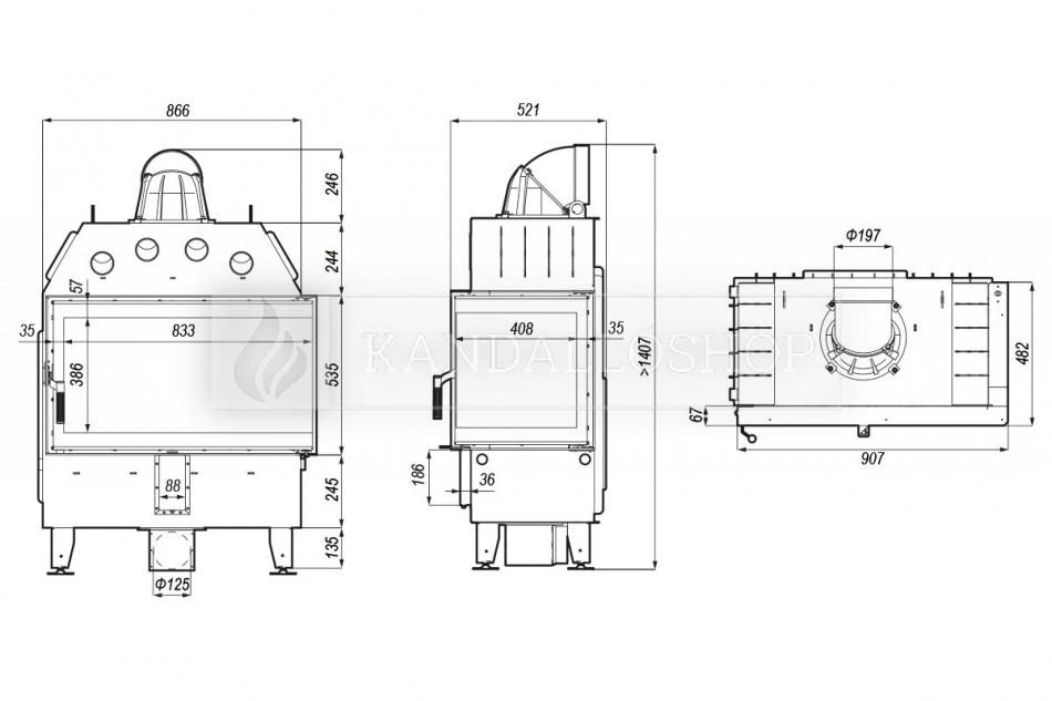 -Defro kompakt sarki kandallóbetét. Masszív acélszerkezetű modell, forgatható öntöttvas nyakkal. A kiváló minőségű kivitel garantálja a kandallóbetét tartósságát.