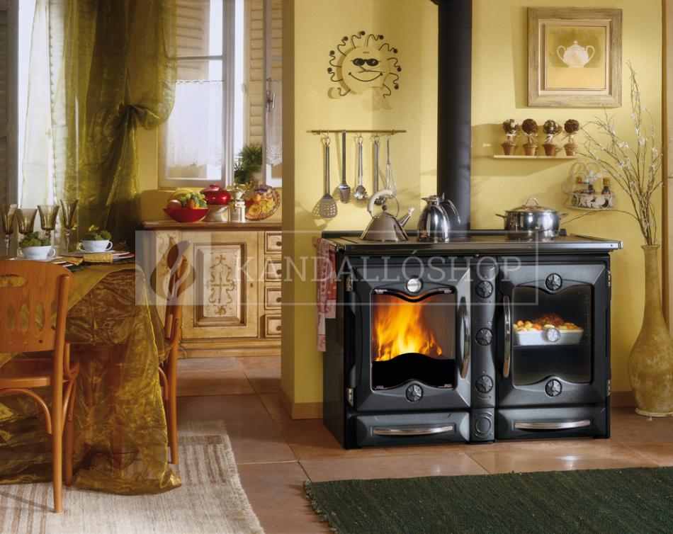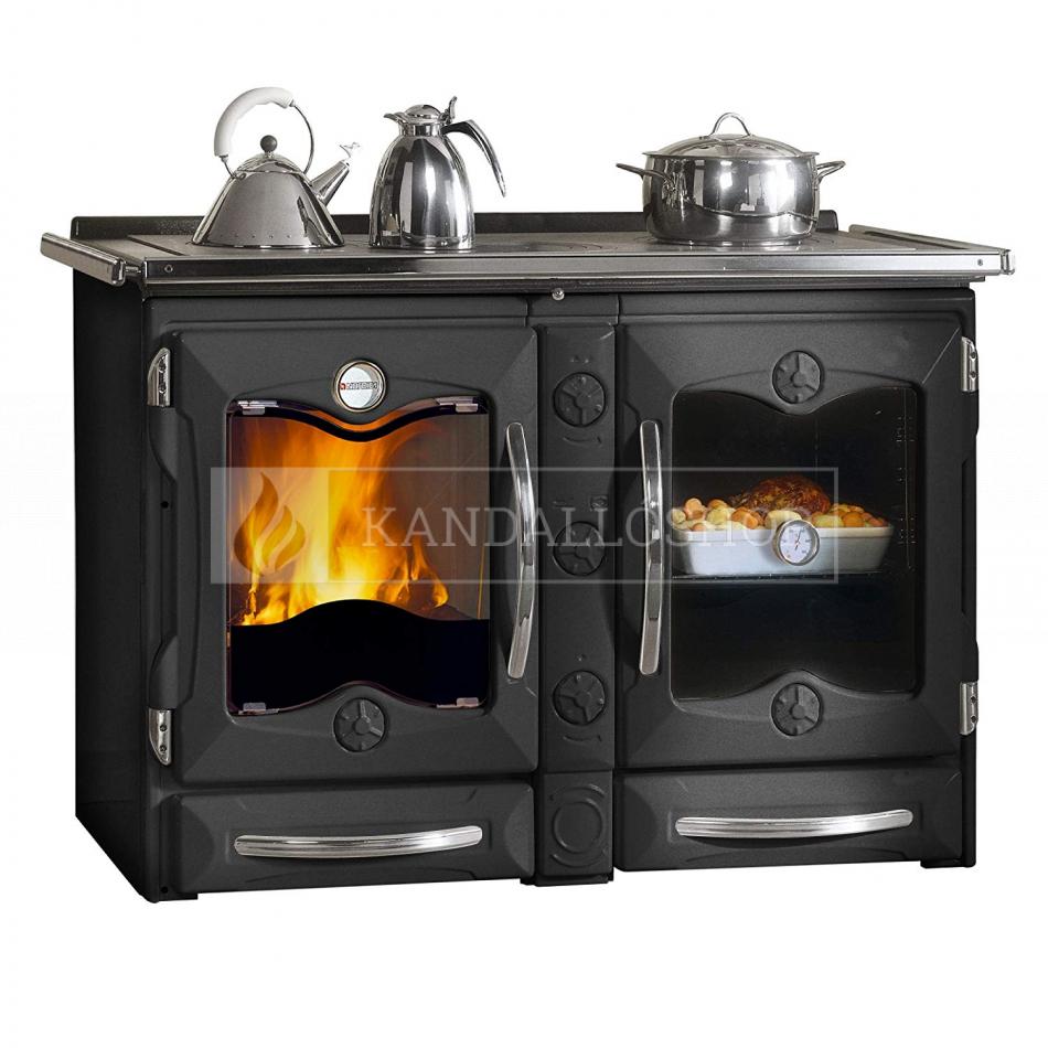 La Nordica America - kiváló minőségű olasz sparhelt, ötöttvas tűztérrel, ajtókkal és zománcozott lemez burkolattal fekete antracit színben
