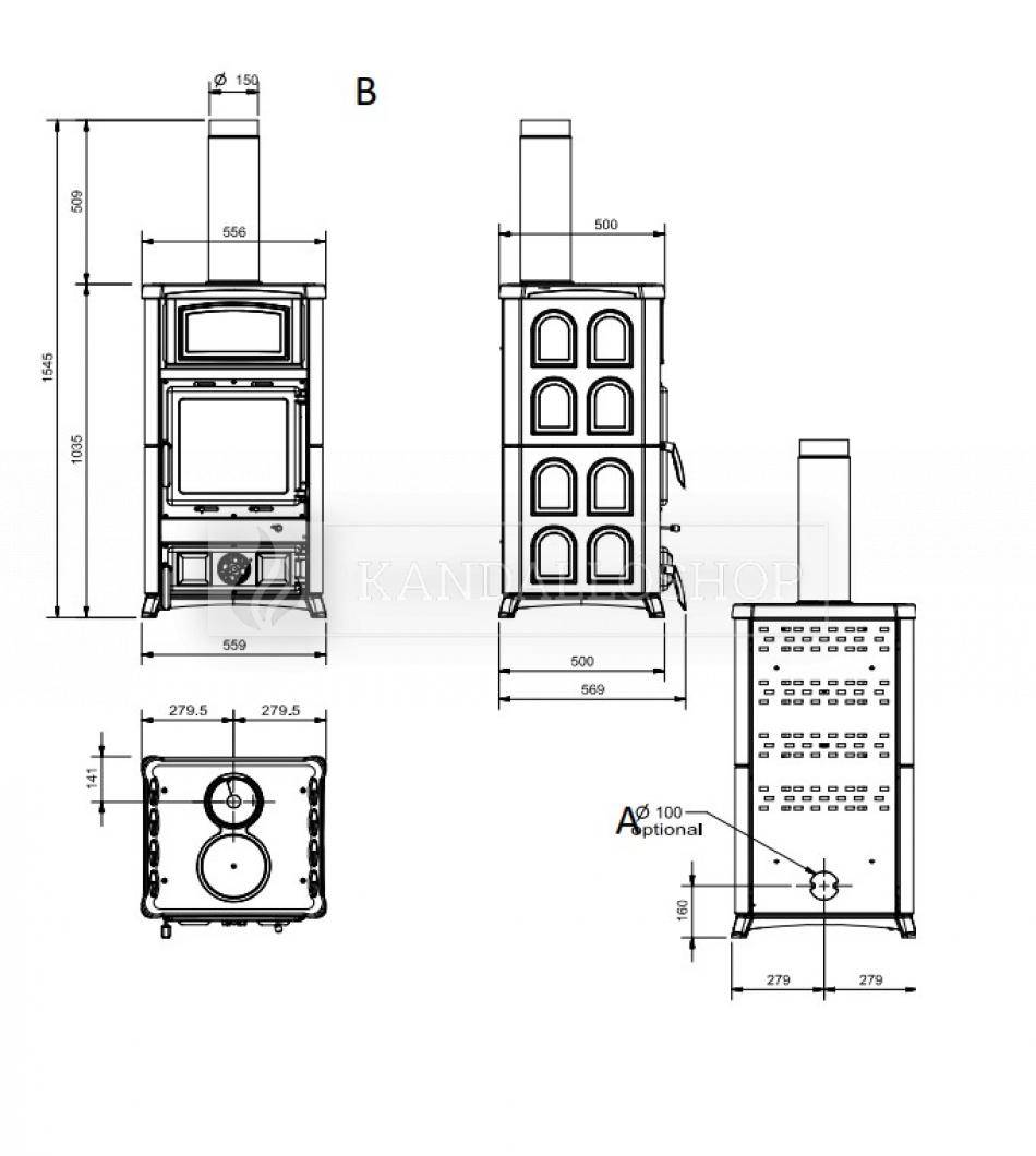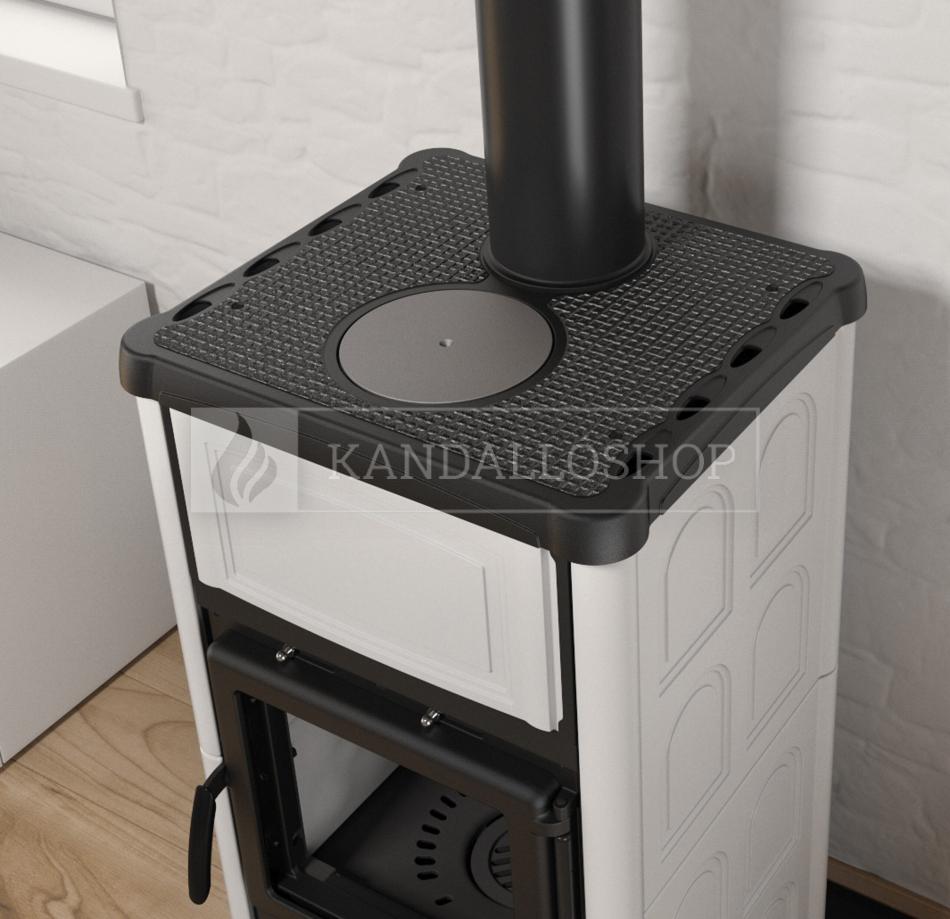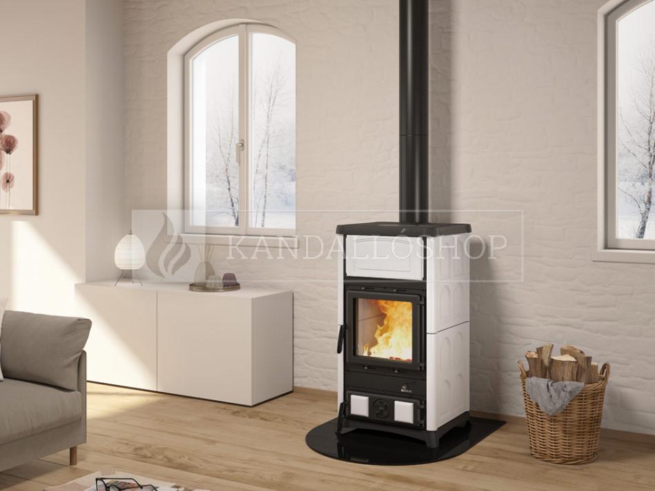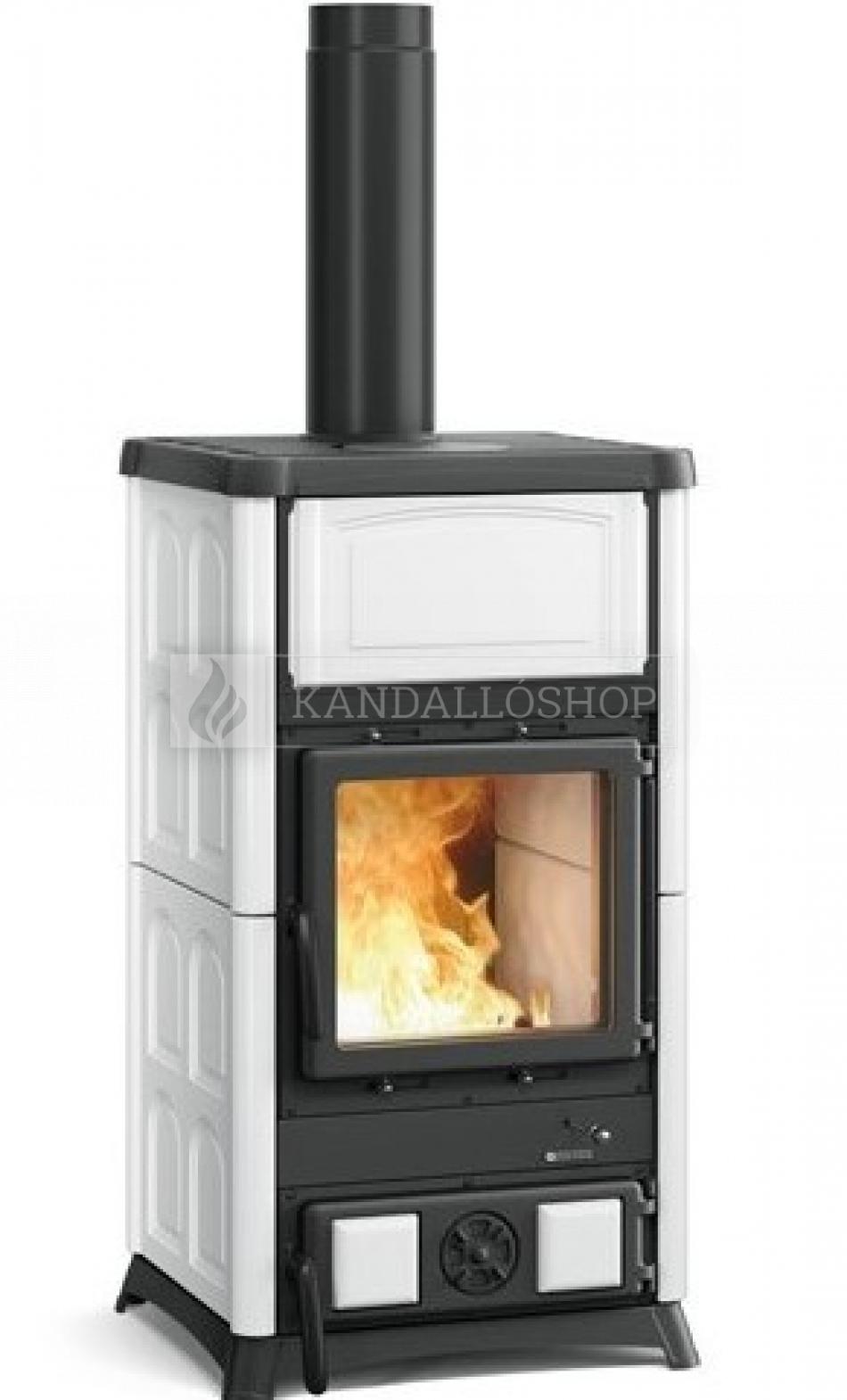 -La Nordica meleglevegős kandallókályha majolika (kézzel készített kerámia) burkolattal. A kandallókályha a La Nordica saját, kiváló minőségű anyagából - Nordiker - készül. Az ajtó zománcozott öntöttvasból készült.